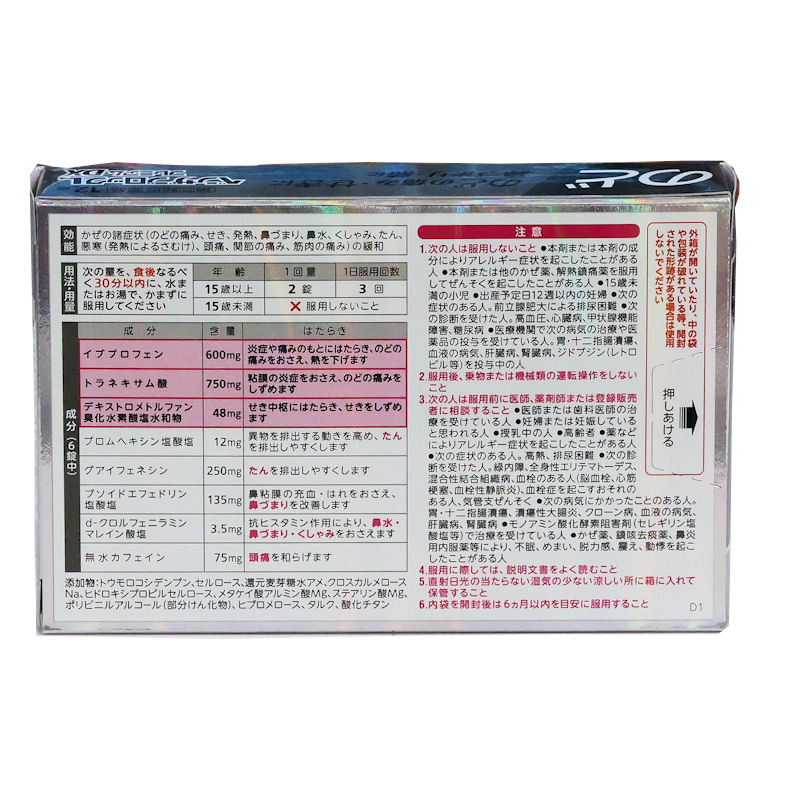 他のかぜ薬、解熱鎮痛薬、鎮静薬、鎮咳去痰薬、抗ヒスタミン剤を含有する内服薬等