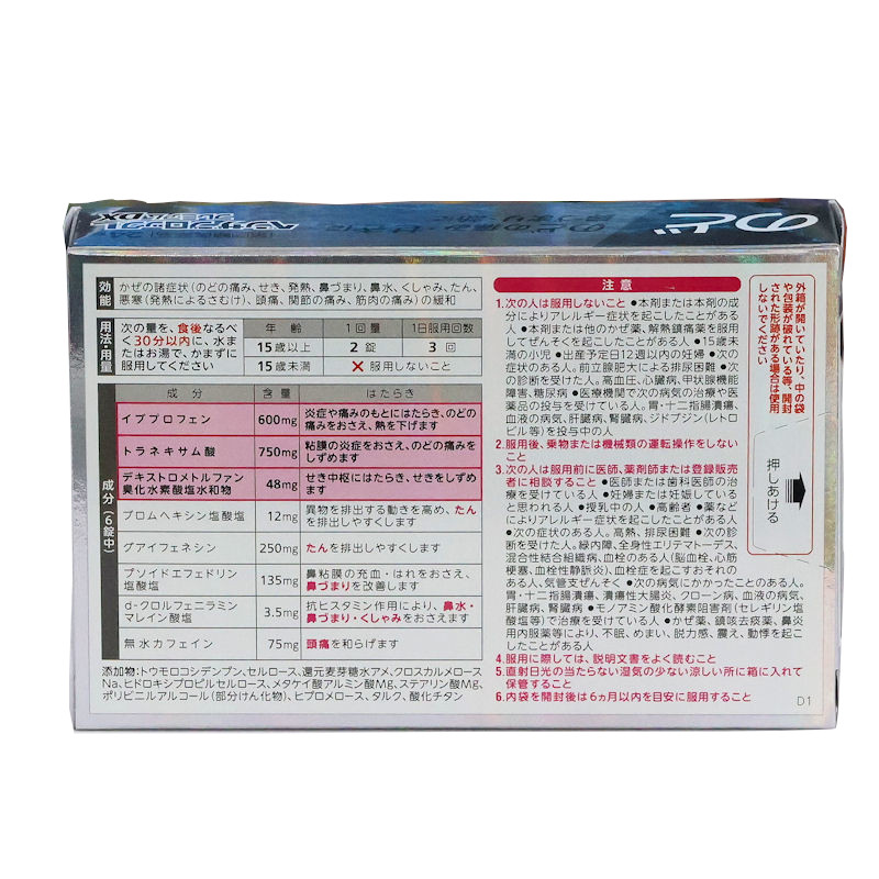 ●イブプロフェンを600mg(1日量)配合し、のどの痛みをおさえ、熱を下げます。