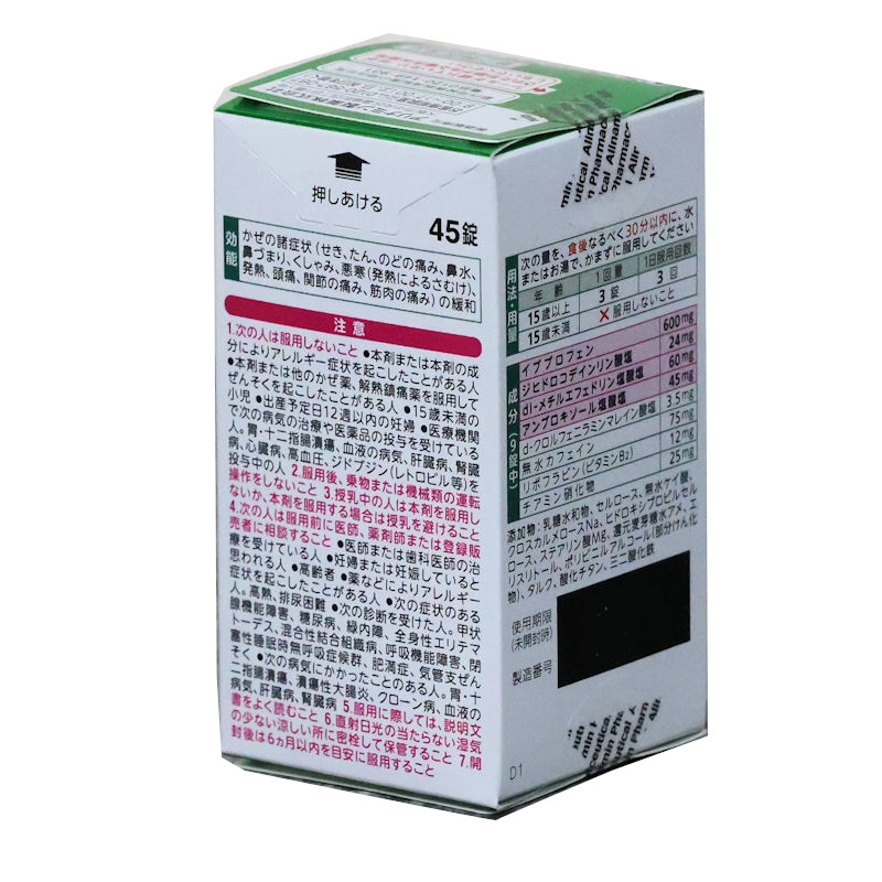 他のかぜ薬、解熱鎮痛薬、鎮静薬、鎮咳去痰薬、抗ヒスタミン剤を含有する内服薬等