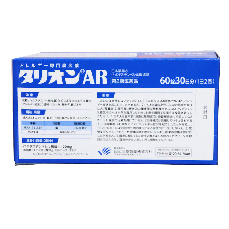 【第2類医薬品】 タリオンAR 60錠 田辺ファーマ 1日2回 長く効く アレルギー専用鼻炎薬 メール便発送可能